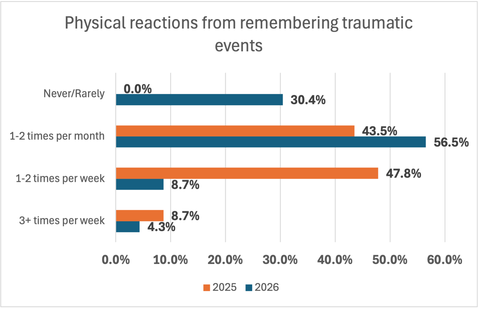 - The child has physical reactions from remembering traumatic events (sweating, heart racing, etc…)