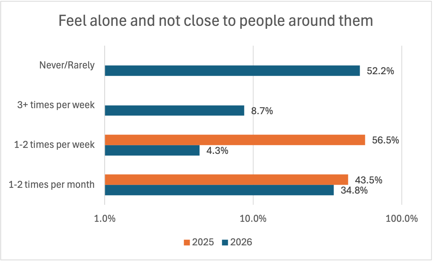 The “Feel Alone” chart above reflects a significant shift from 2025 to 2026. The girls voted in 2026 that they do not feel alone 1/2 of the time vs. multiple events per week or month in 2025. Clearly, we have more work to do to improve further. However, the data suggests our approach of two parents, a local pastor, a tutor and 8 church ladies are making a big dent in our OVC’s.